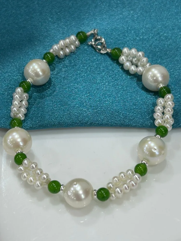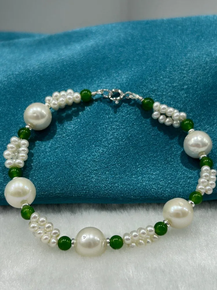 YOB Wholesale Trendy Anniversary Rice Shape Freshwater Pearl Beaded S925 Chain 18cm Bracelet